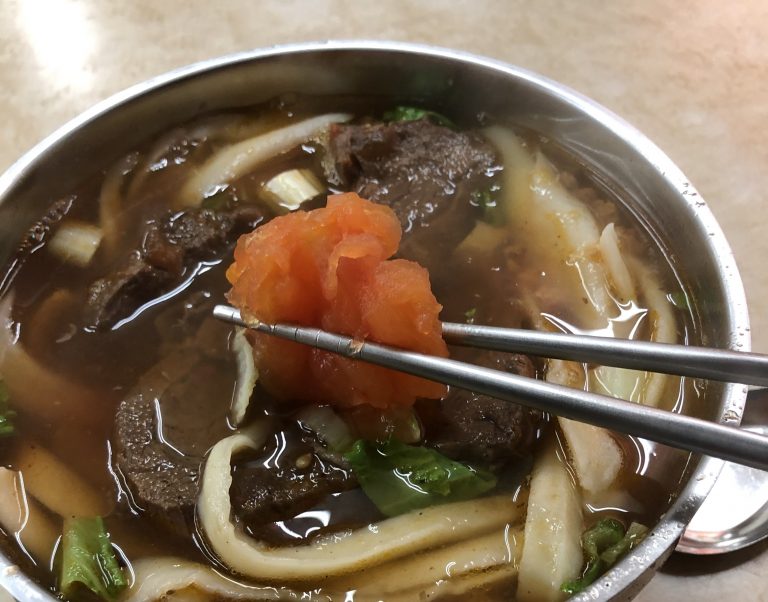 目玉のトマト牛肉麺は台北の相場で言えばやや高い気もしますが、それでもワンコインで食べられるなら十分に満足できると思います。