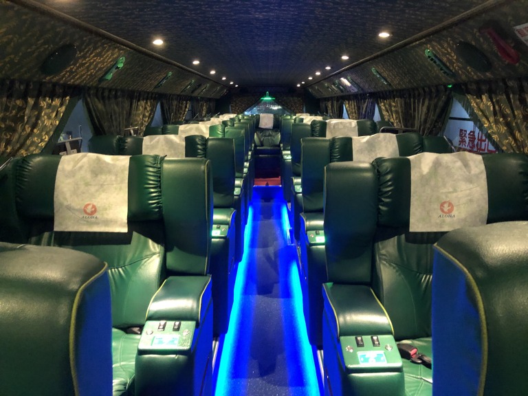 阿羅哈客運(アロハバス)と和欣客運は運賃はやや高くなるものの、内装は二排座(2列シート)になり、日本の長距離バスと比べてもかなり快適な乗り心地が売り!(三排座=3列シートのバスもあり)