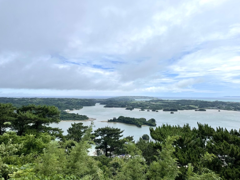 旅程の大半が雨でしたが、最終日だけは晴れてくれたので名護市にある絶景スポット「嵐山展望台」へ。
